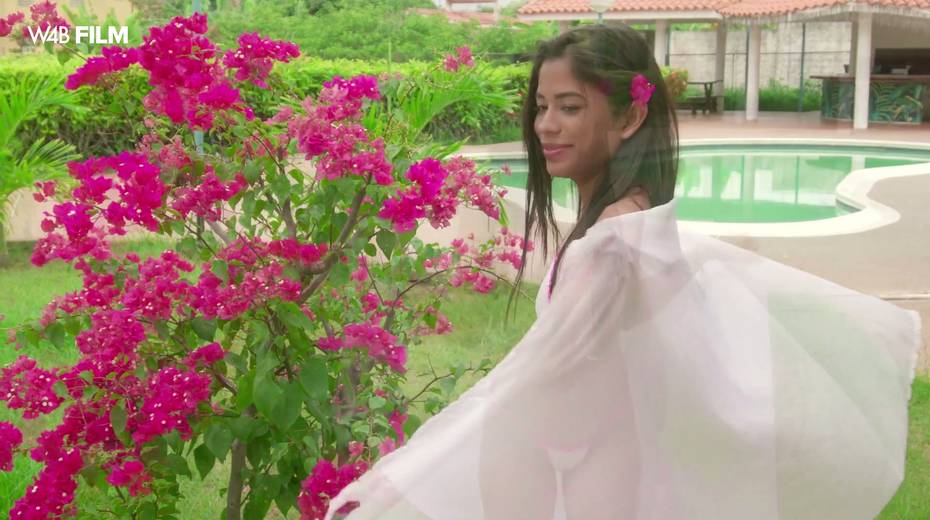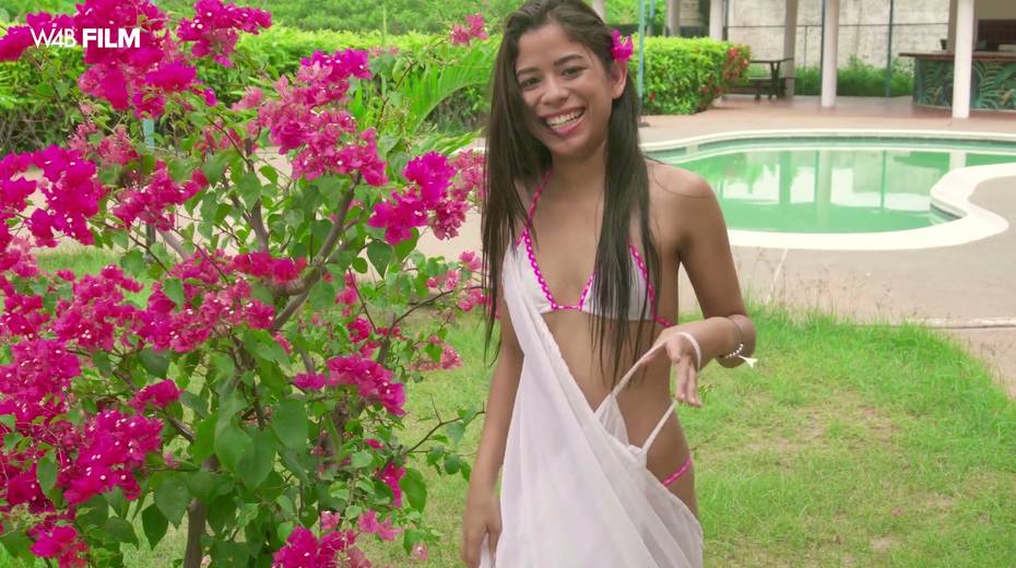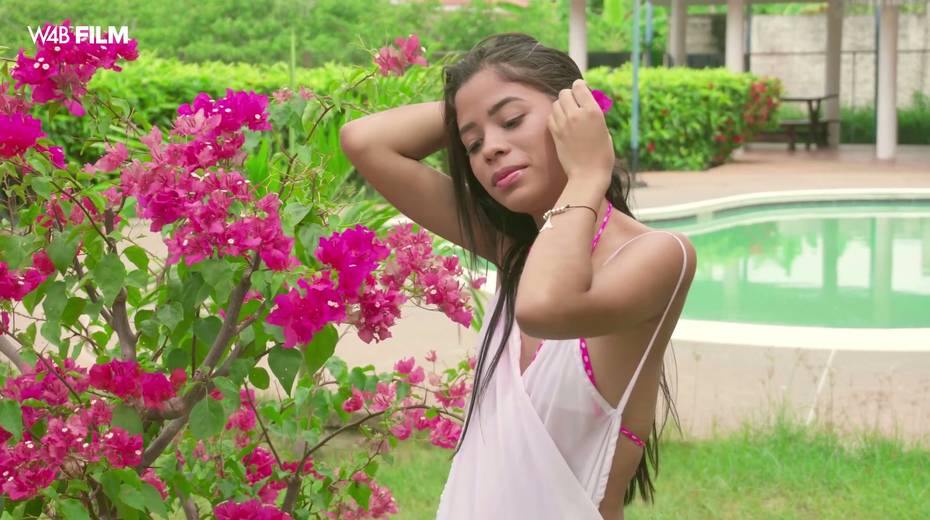 Slim Brazilian babe Karin Torres is masturbating her pussy in the garden