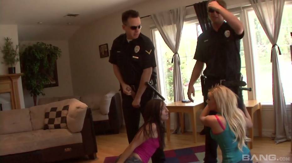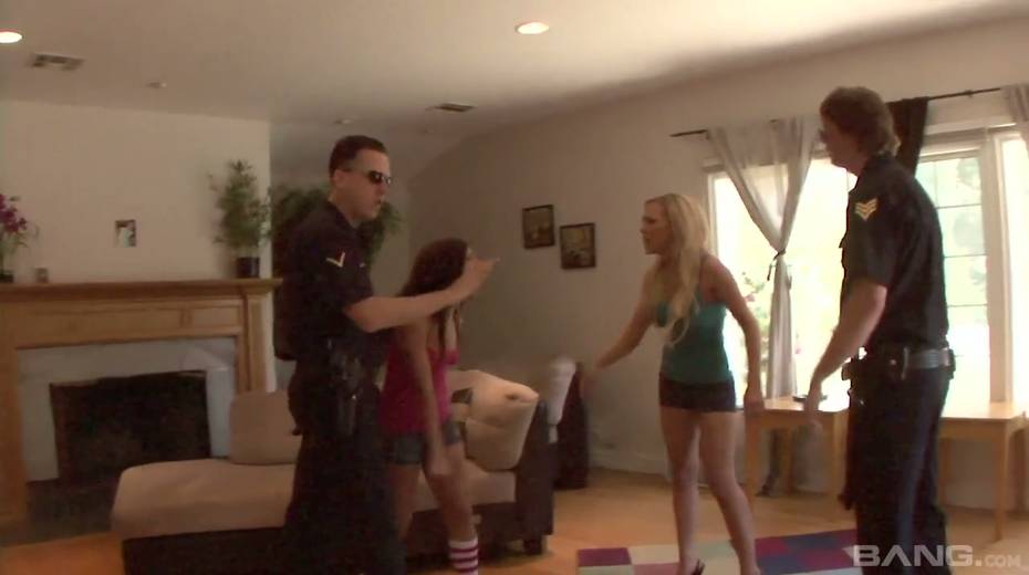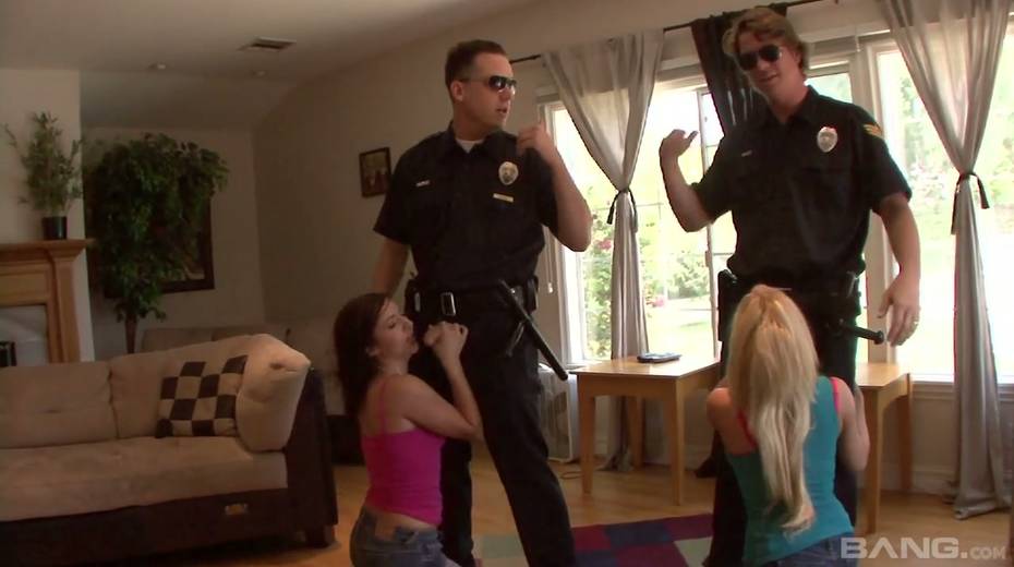 Arrested chicks Ashli Orion and her nasty GF give a blowjob to policemen