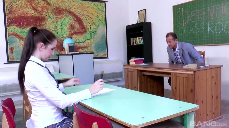College chick in short kilt skirt Kittina Ivory gets intimate with horny teacher
