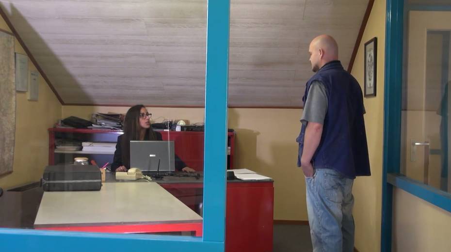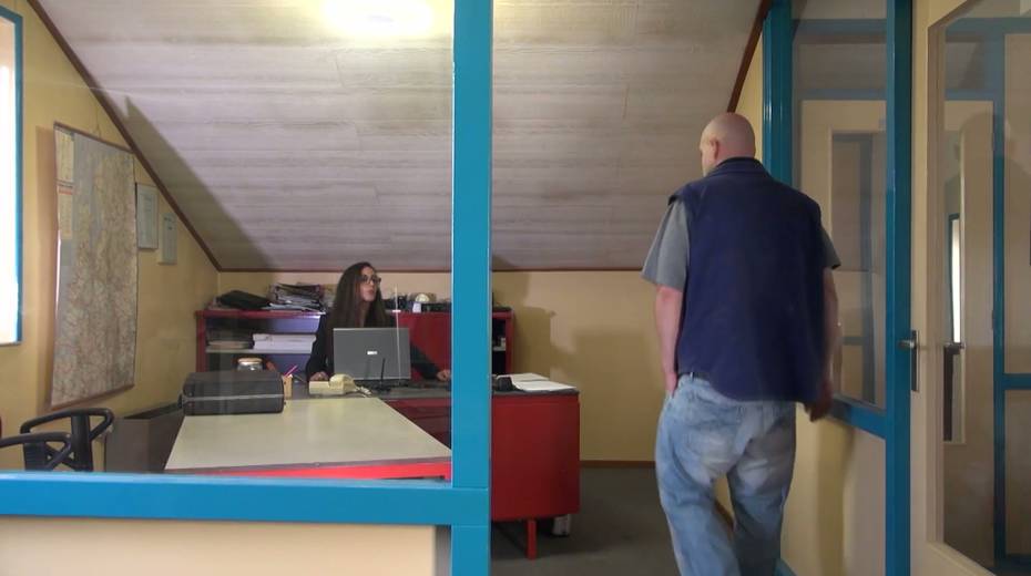 Whorish tattooed female boss is spanking dude before crazy anal sex in the office
