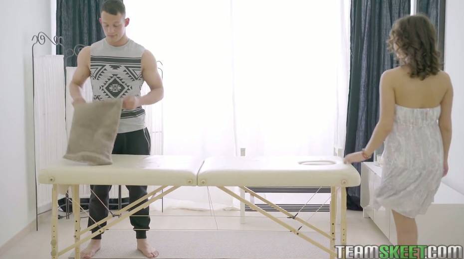 Beautiful oiled up client Erin is fucked right on the massage table