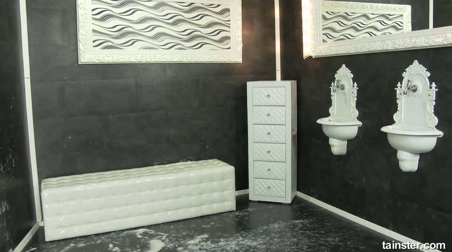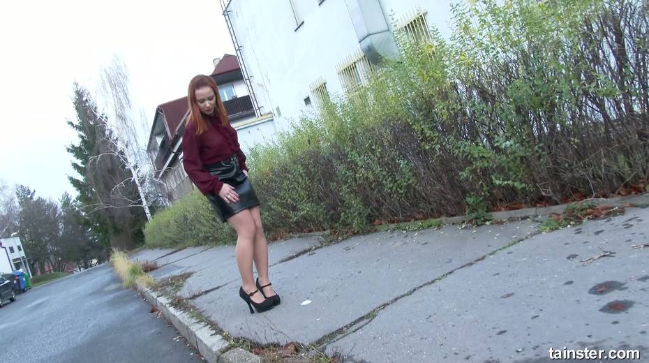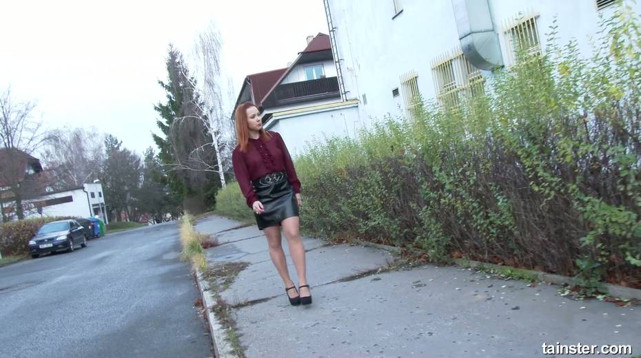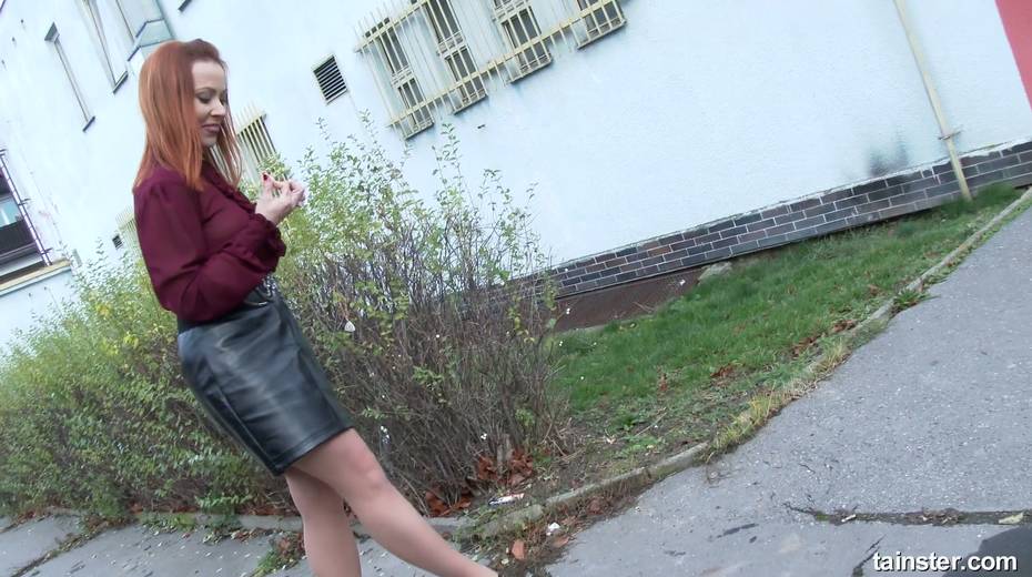 Red haired whore Bibi Fox goes wild in glory hole room and smears sperm all over her body