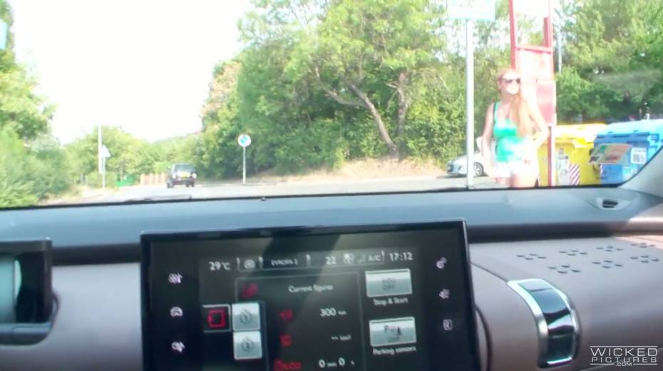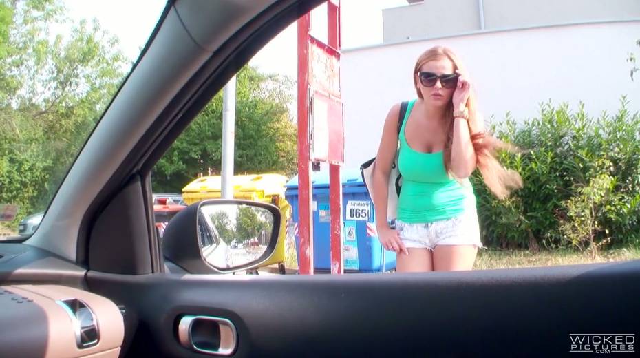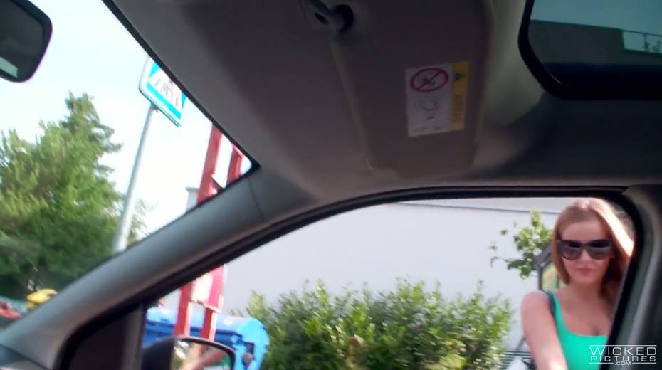Red head Candy Alexa shows her boobs in the car before a crazy quickie with driver