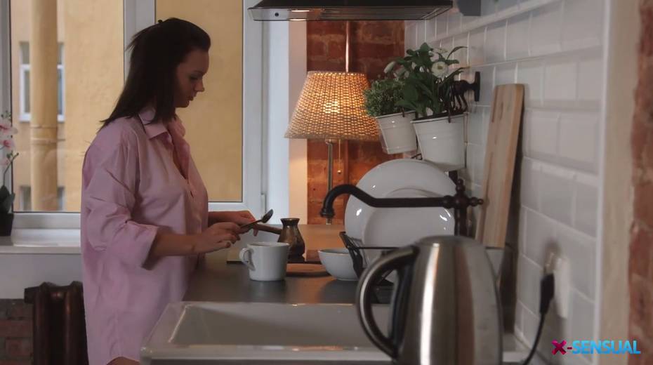 Yummy brunette teen Emily Thorne gets her anus fucked early in the morning