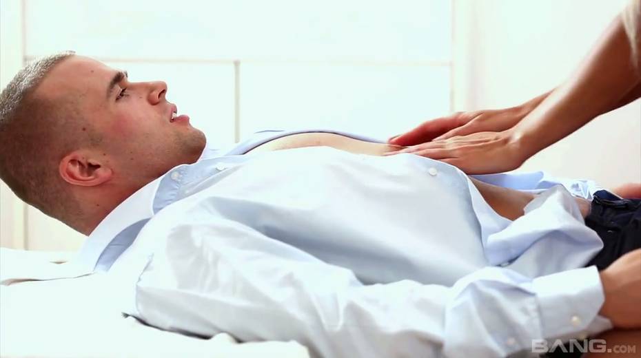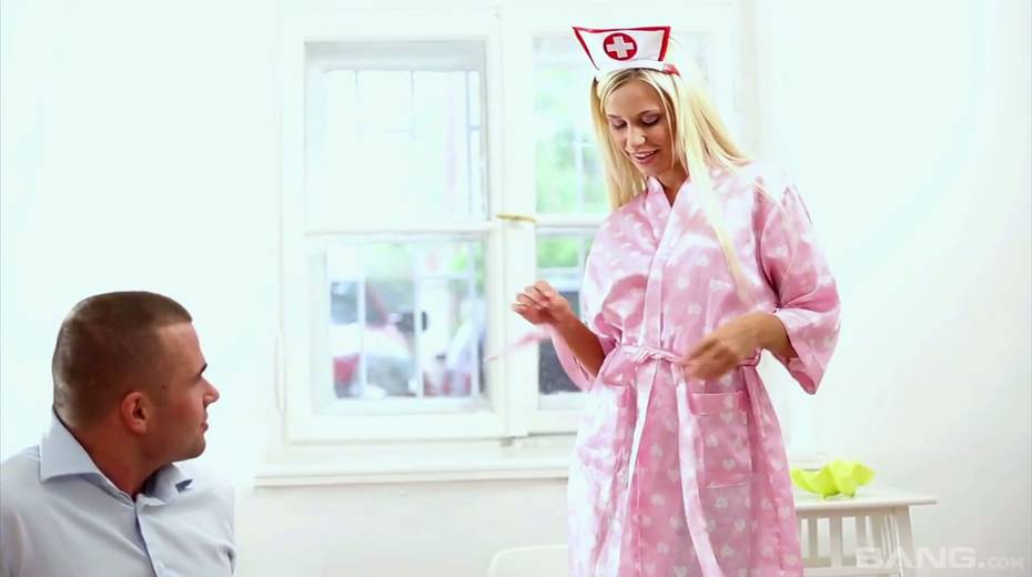 Slutty blond nurse in sexy uniform Dido Angel gives a blowjob and gets laid