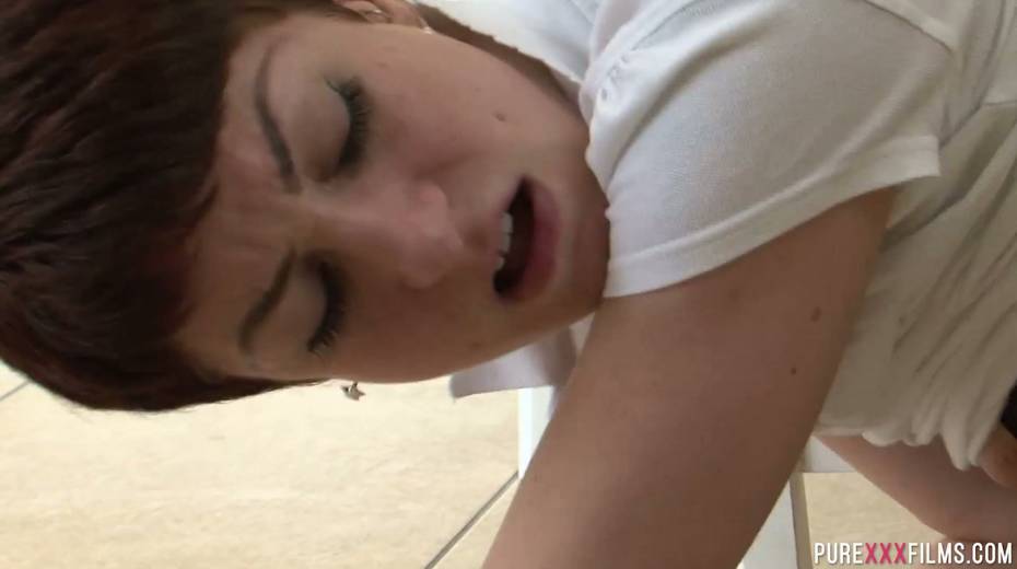 Student with tramp stamp Miss Trixx gets her muff doggy fucked