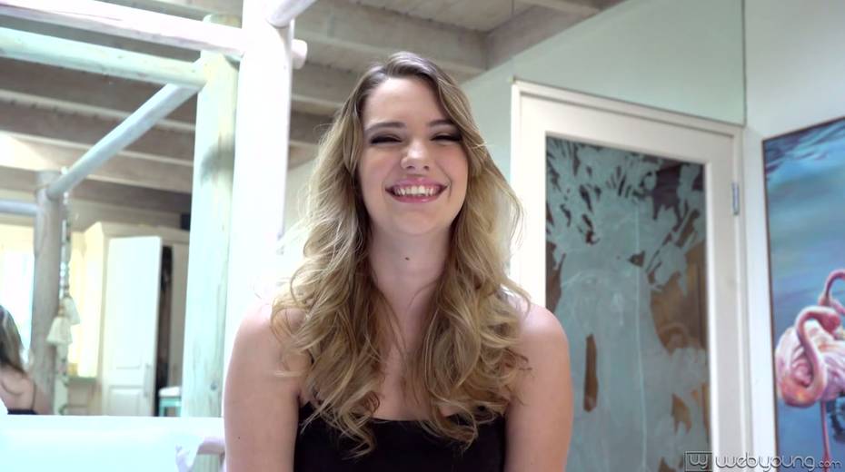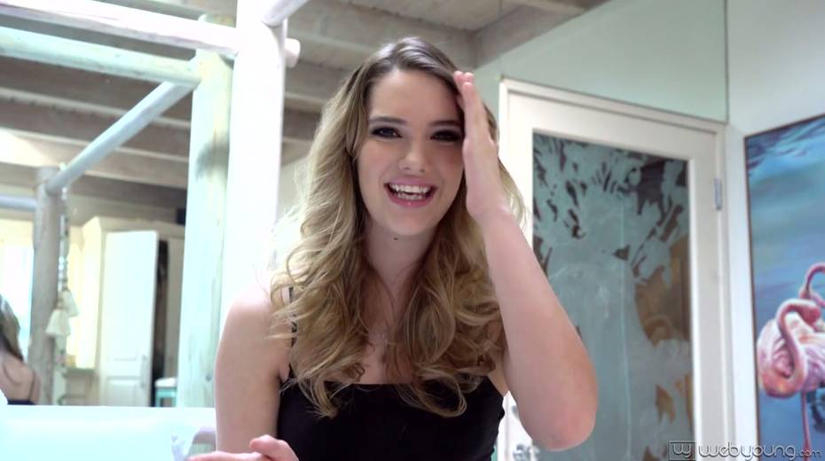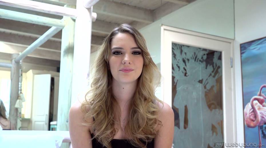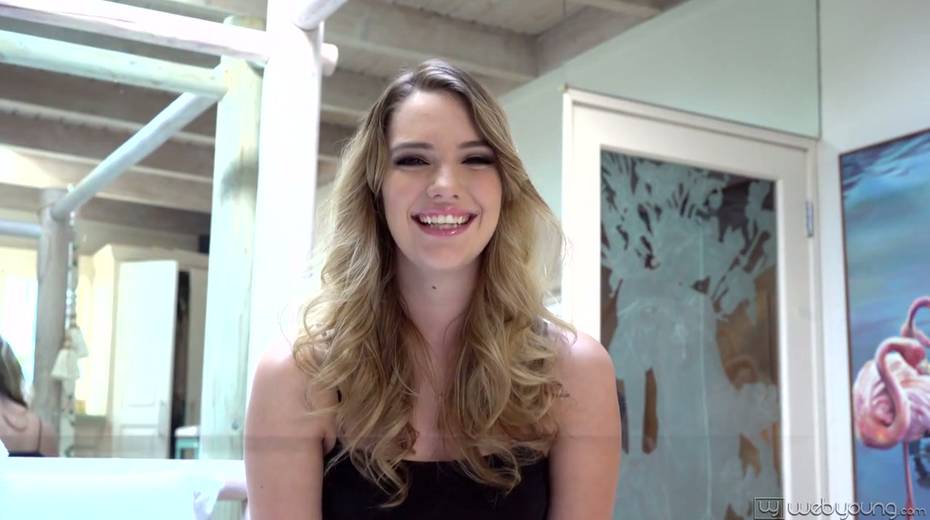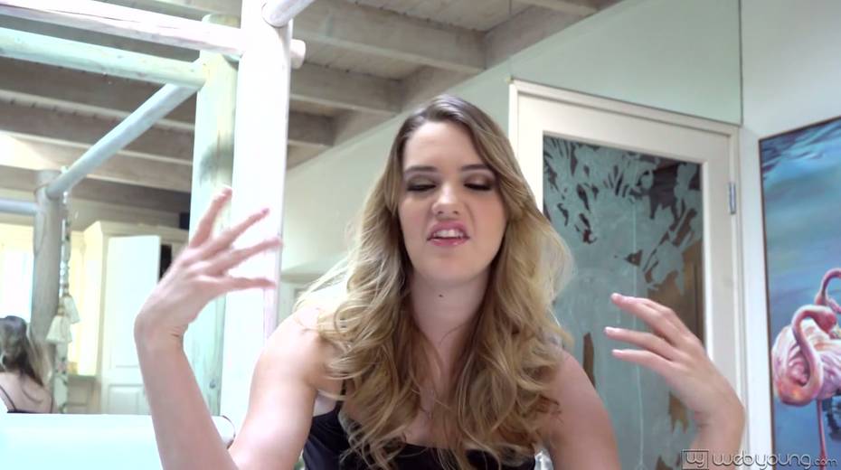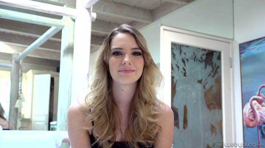 Adorable babe Kenna James gives an interview after taking part in hot lesbian scene
