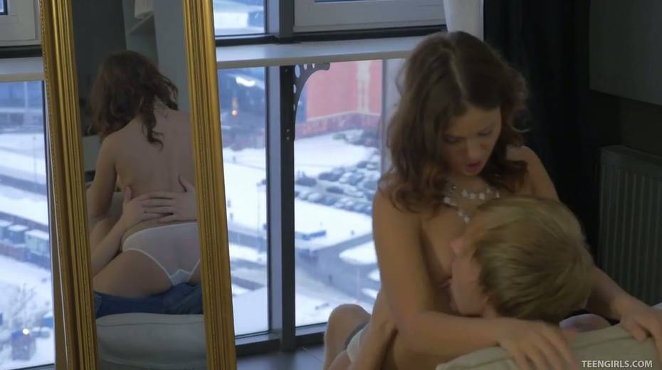 Sensual babe Ariana is riding her boyfriend in front of the mirror