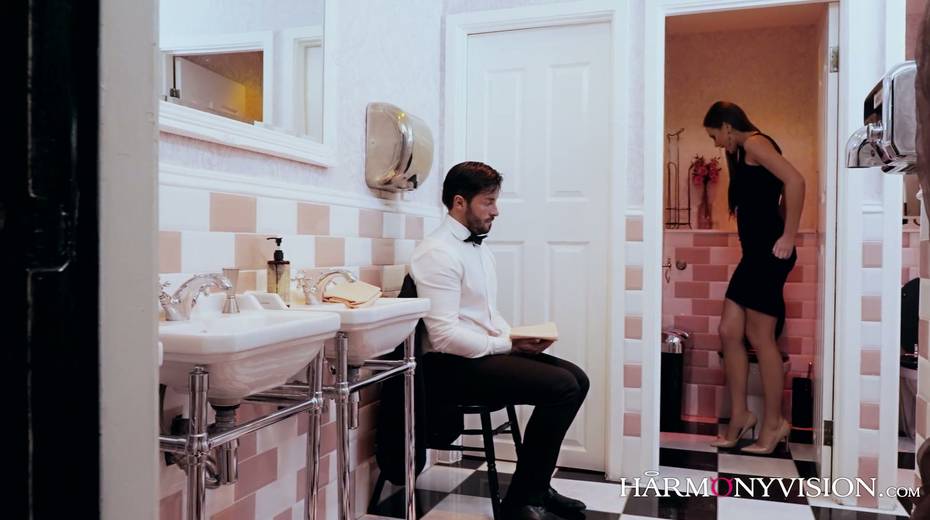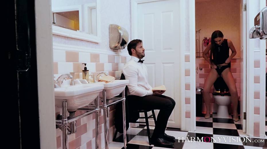 Pissing babe Tina Kay gets her pussy fucked right in the bathroom