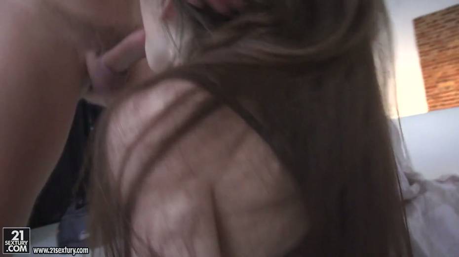Leggy brunette Angel Rush is stimulating her clit with vibrator during hardcore anal sex