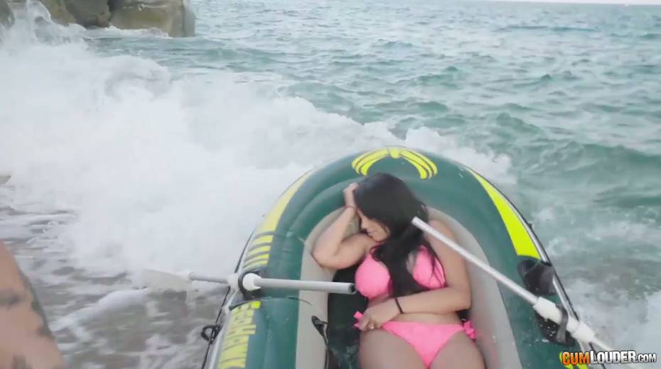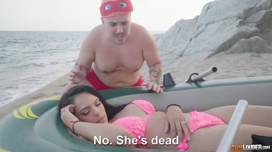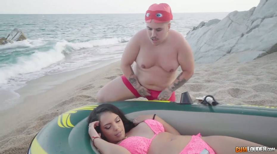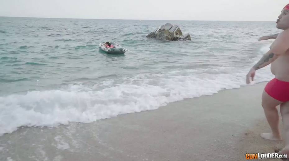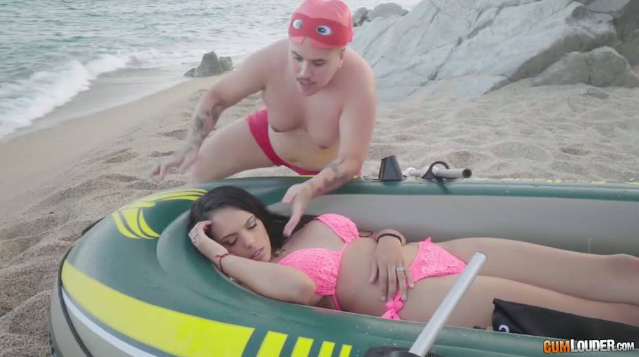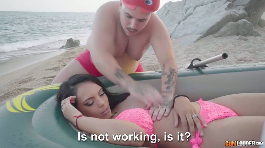 Two kinky dudes fuck super juicy Spanish milf Katrina Moreno chick on the beach