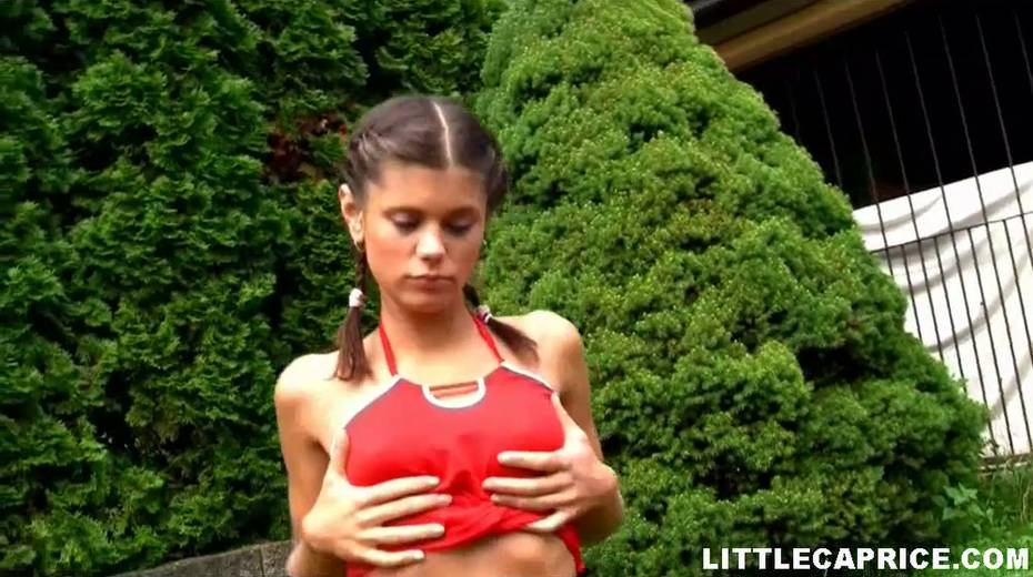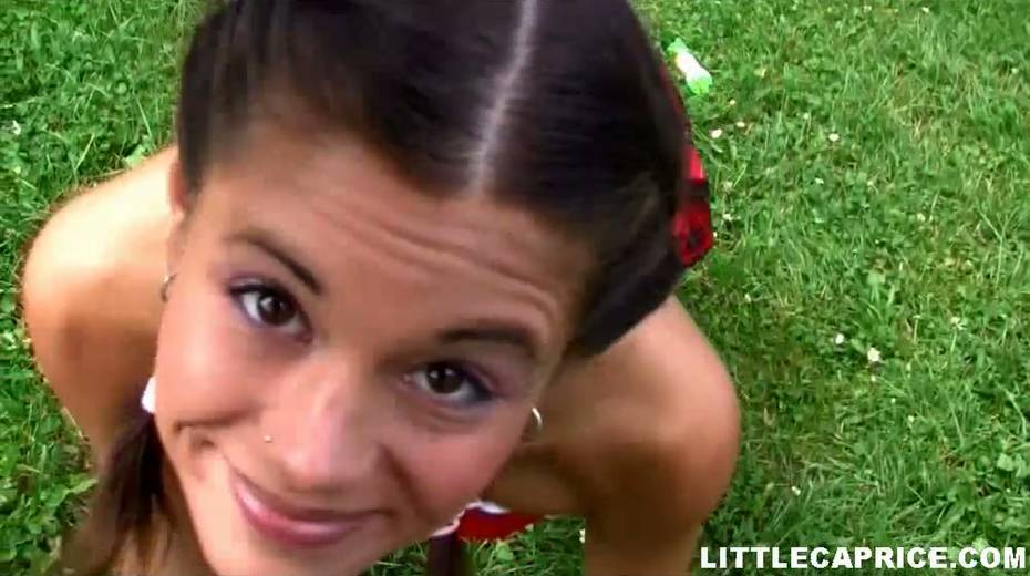 Lovely babe Little Caprice is masturbating her sweet pussy right on the lawn