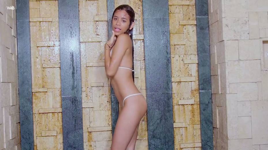 Tanned Latin babe Karin Torres shows off her yummy pussy and masturbates