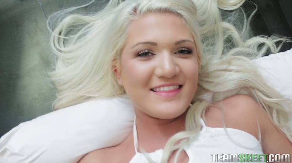 Sweet blondie Ashlee Mae is sucking dick and getting her pussy fucked
