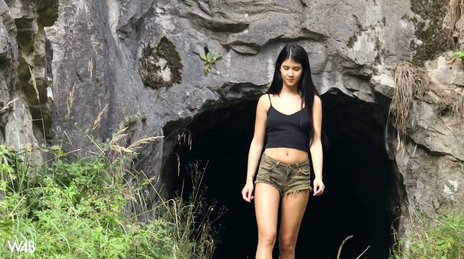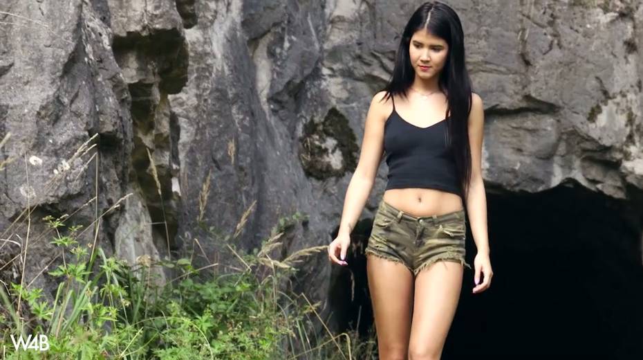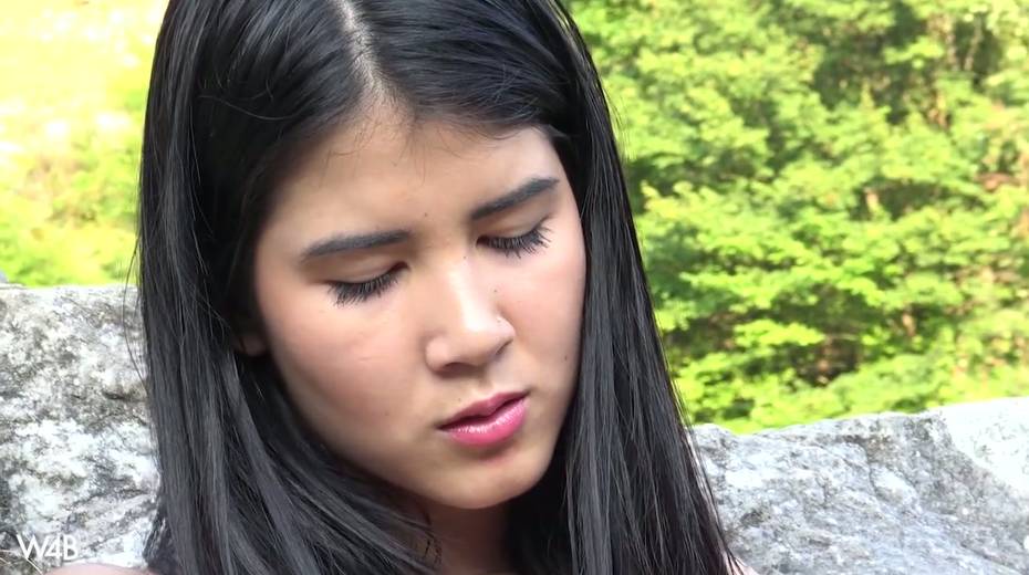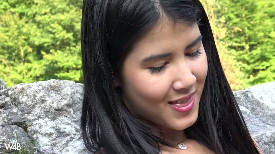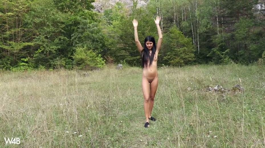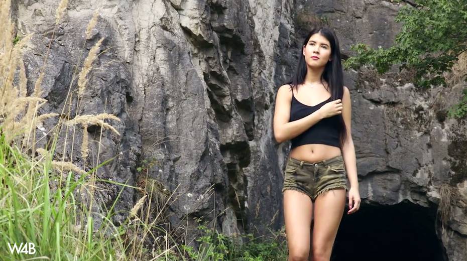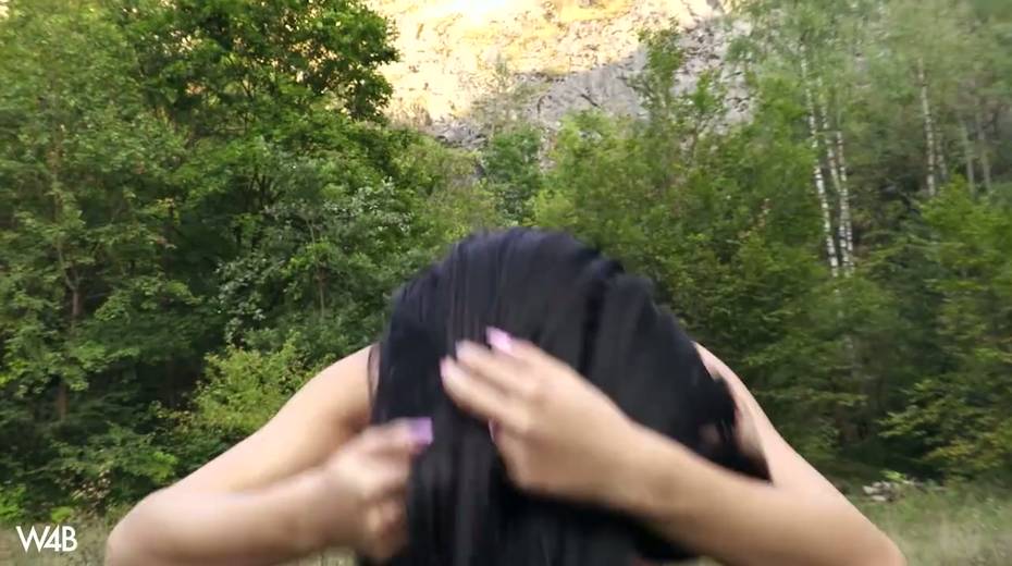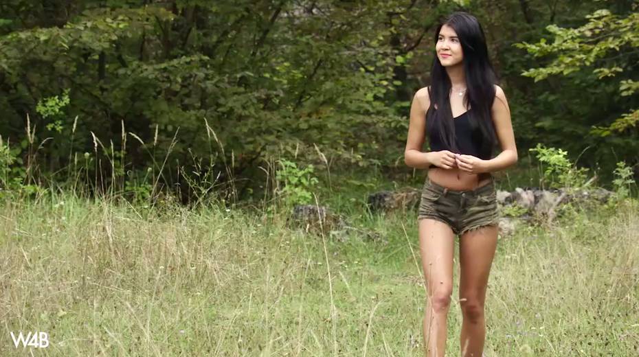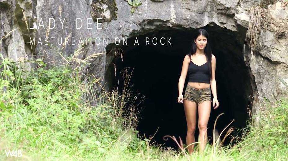 Captivating whorish teen Lady Dee is fucking her pussy outdoor