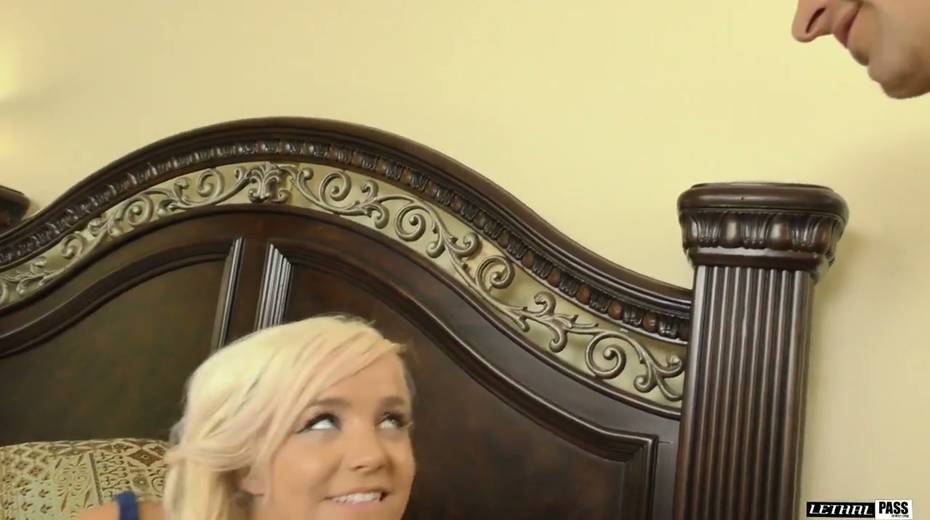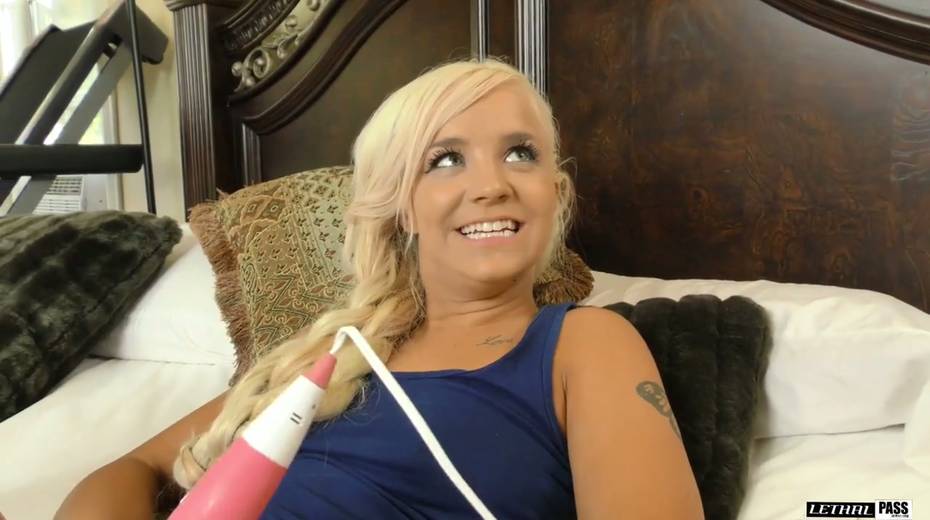 Cute blonde Bella Jane is sucking big dick and masturbating her smooth pussy