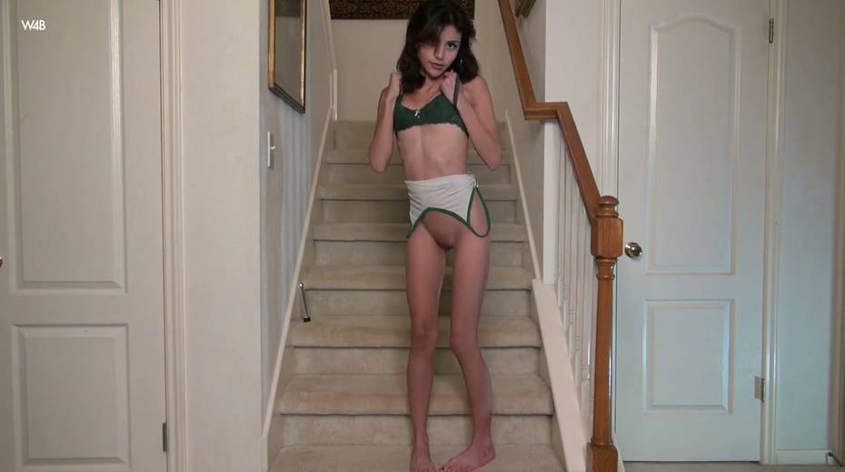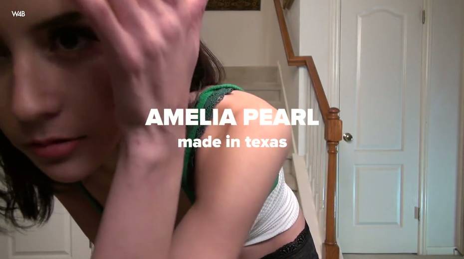 Busty petite brunette Amelia Pearl is masturbating her smooth pussy