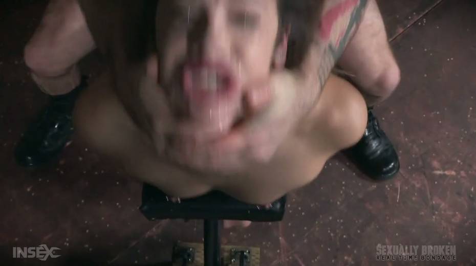 Two horny dudes fuck mouth and pussy of tied up bitch Eden Sin