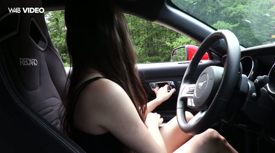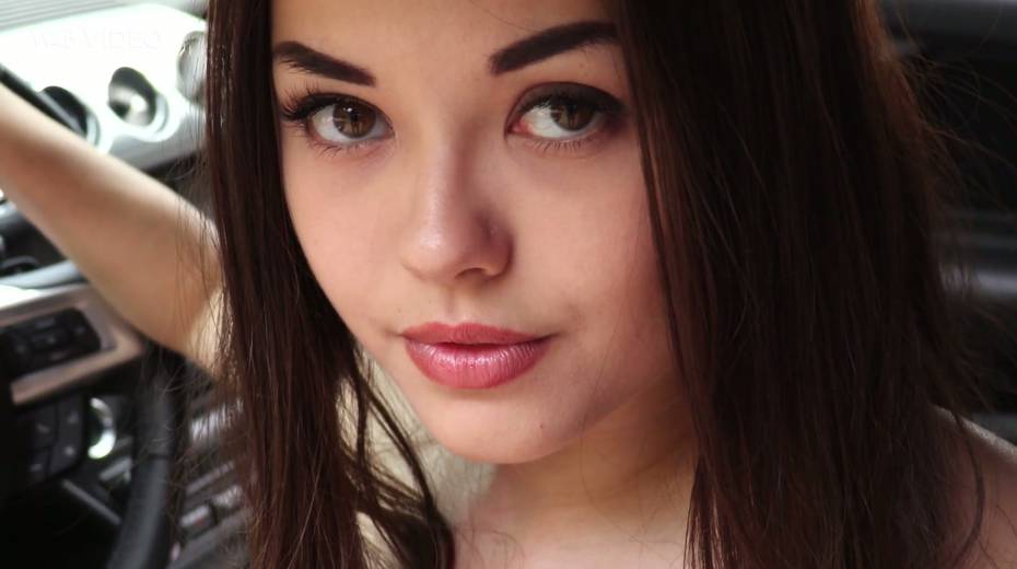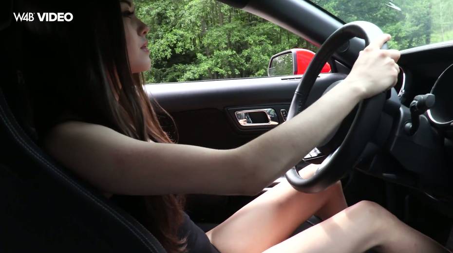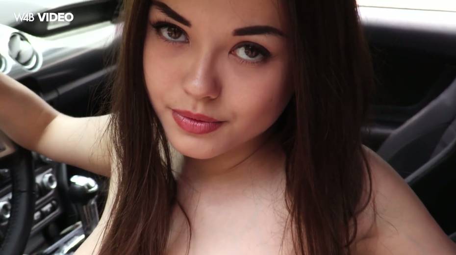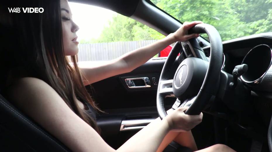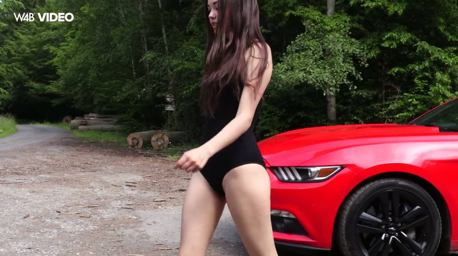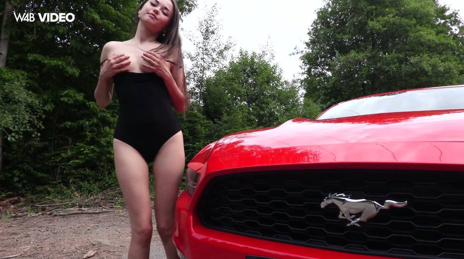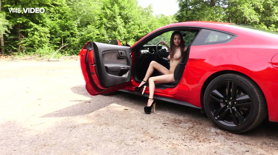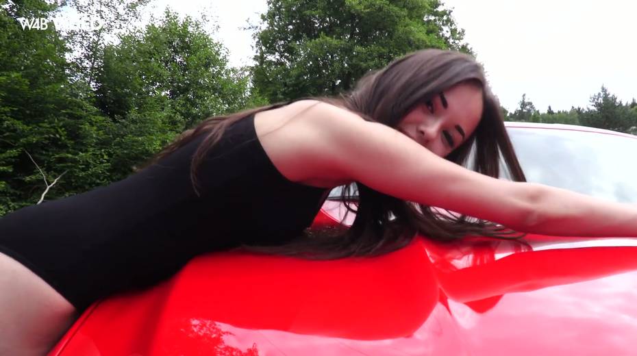 Gorgeous beautiful hottie Li Moon is posing by the posh red car