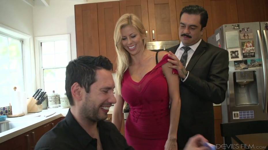 Cuckold husband allows his friend to fuck face and twat of whore wife Alexis Fawx