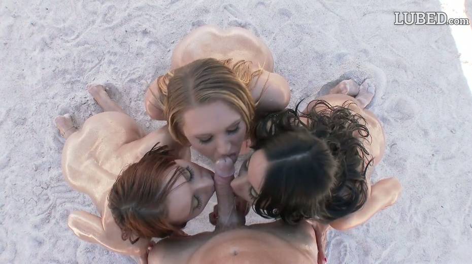 Tasty looking lubed babes are fucked by one hot blooded guy