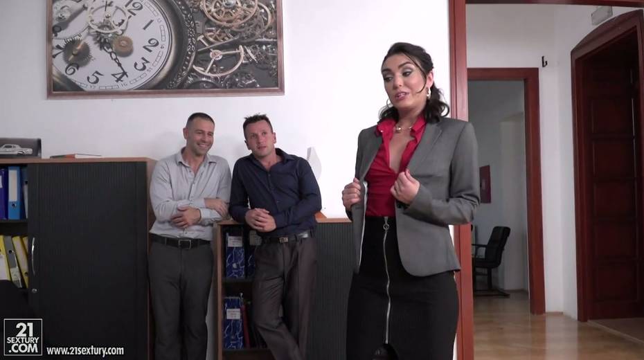 Two co-workers fuck anus and pussy of slutty office chick Geni Juice