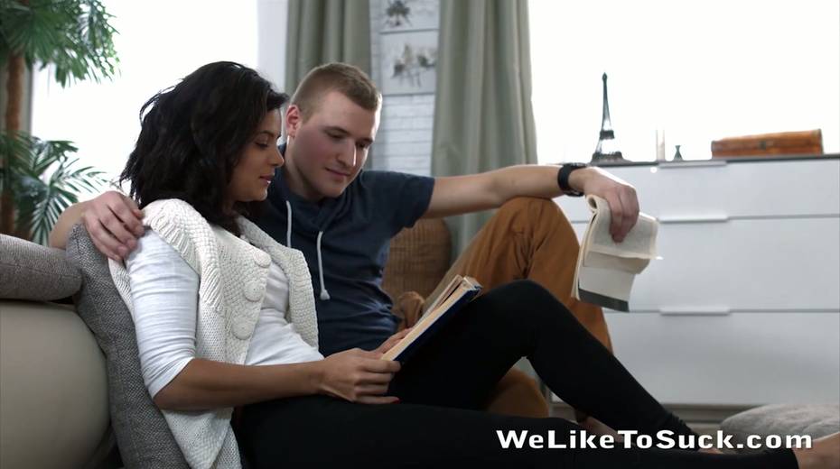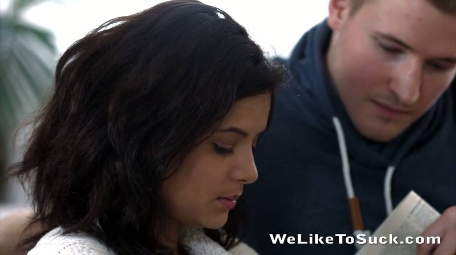 Alluring teen with pierced nose Xena gives a sensual blowjob before sex