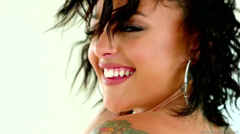 Tattooed whore Holly Hendrix gargles throat with sperm cocktail