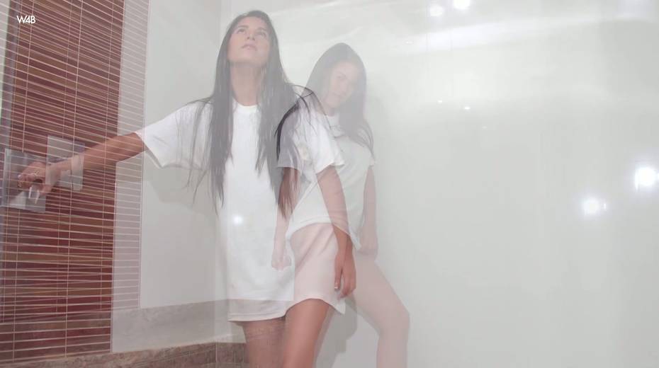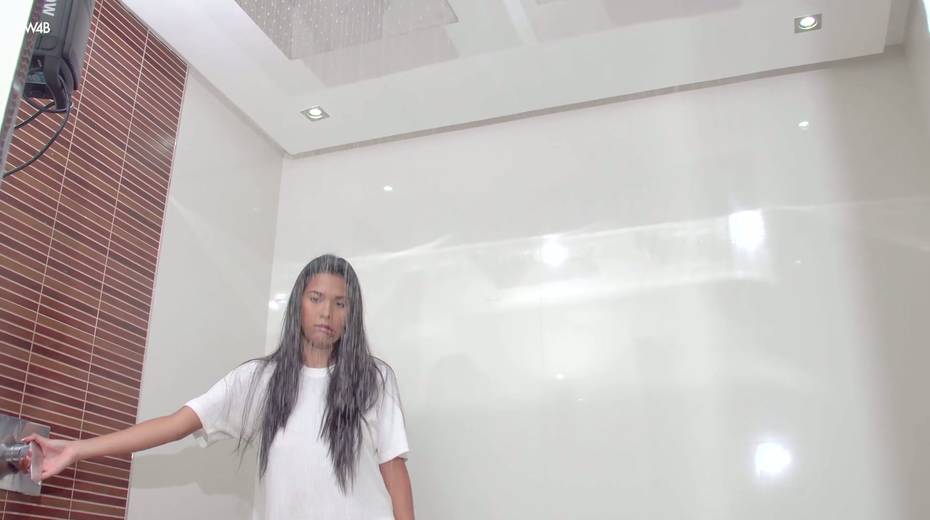 Beautiful seductive babe in wet white T-shirt Kendra Roll