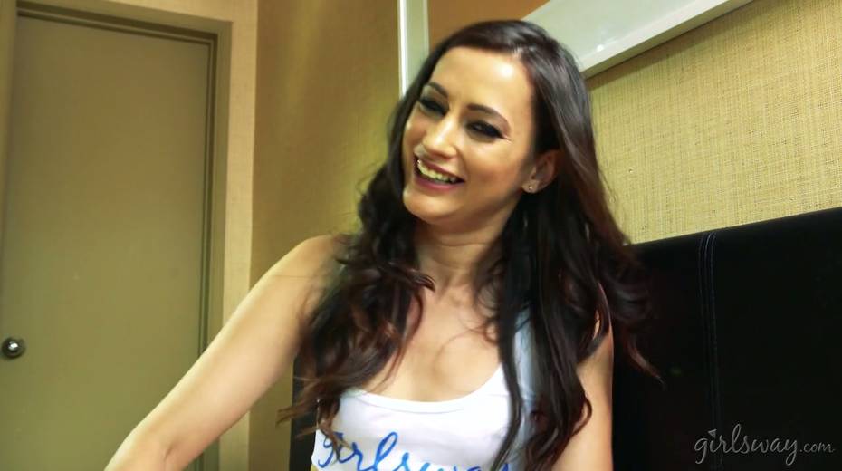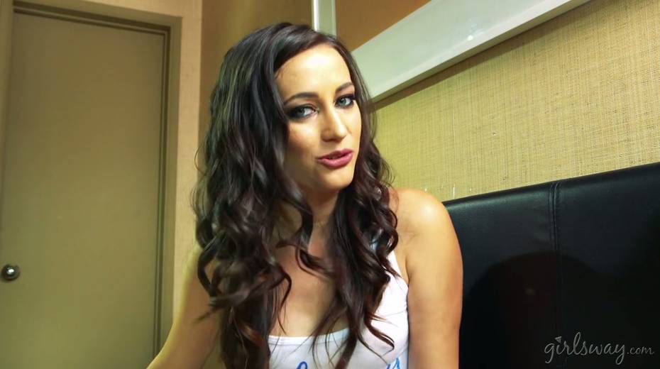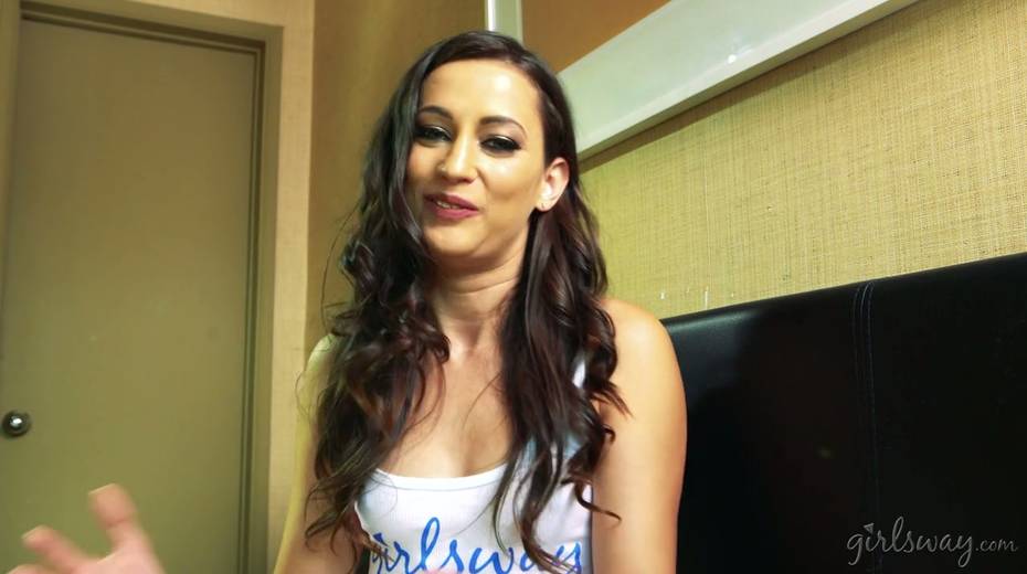 Hottie Georgia Jones gives an interview after hot lesbian scene