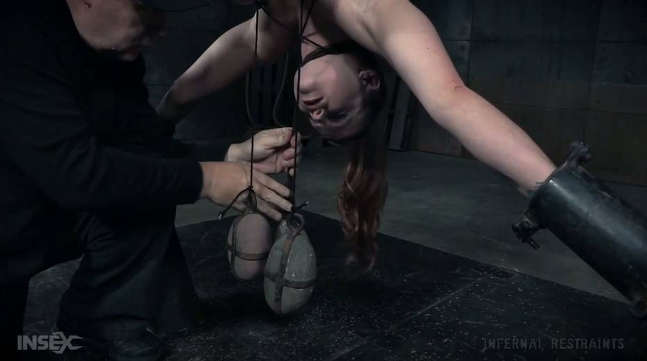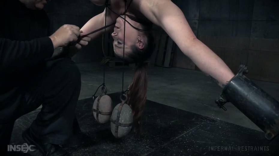 Suspended upside down bitch Bella Rossi gets her pussy punished