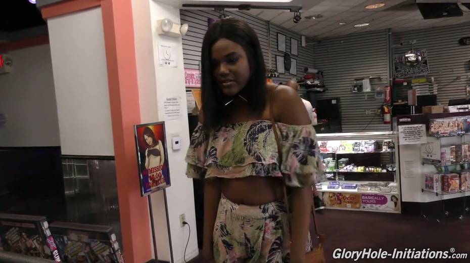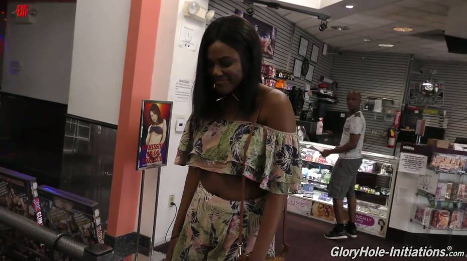 Big bottomed ebony chick Yara Skye sucks a white dick sticking out of the glory hole