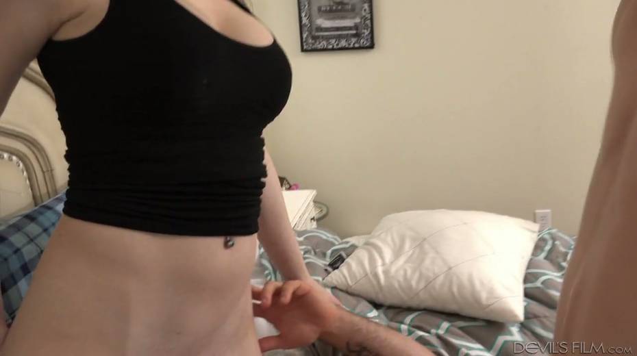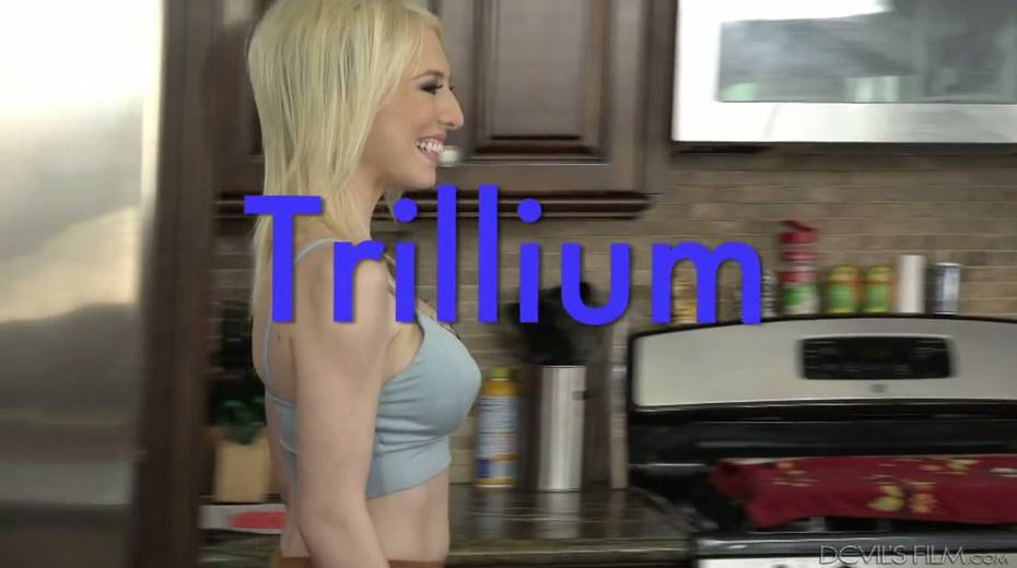 Slutty and sex-hungry blonde Trillium is fucked by two kinky fellows