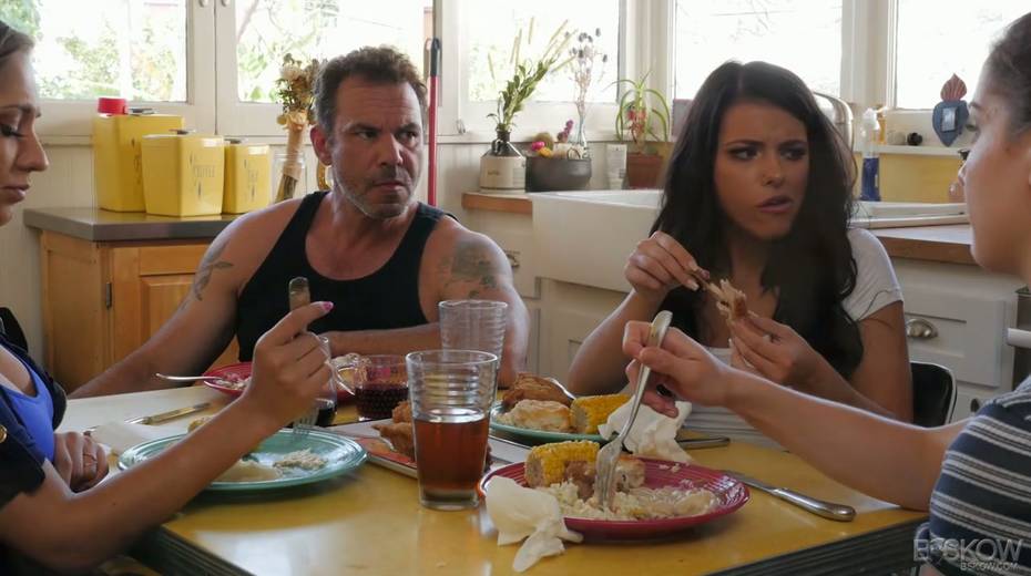 Tempting chick Reena Sky seduces her step daddy and goes wild on his meaty cock