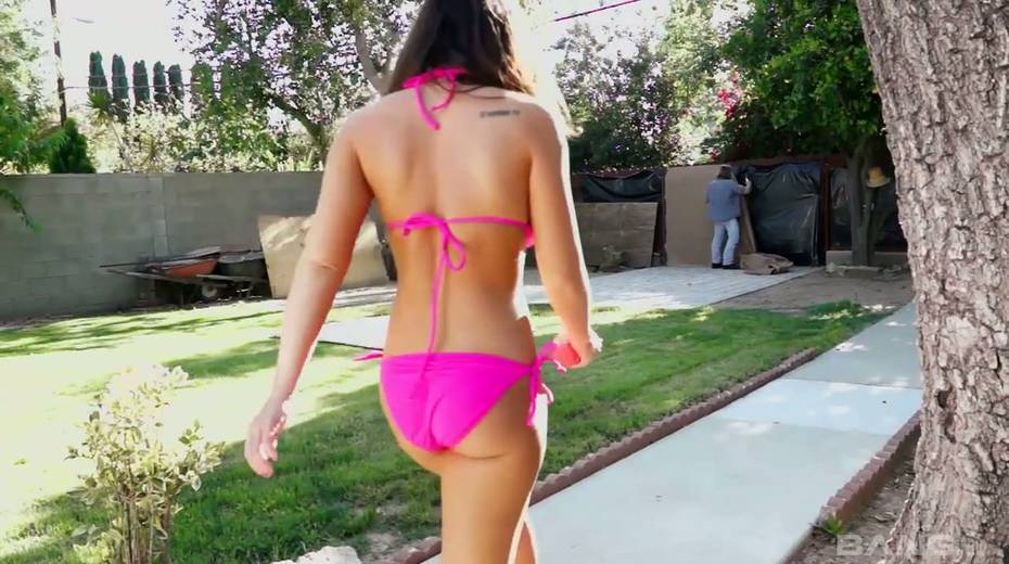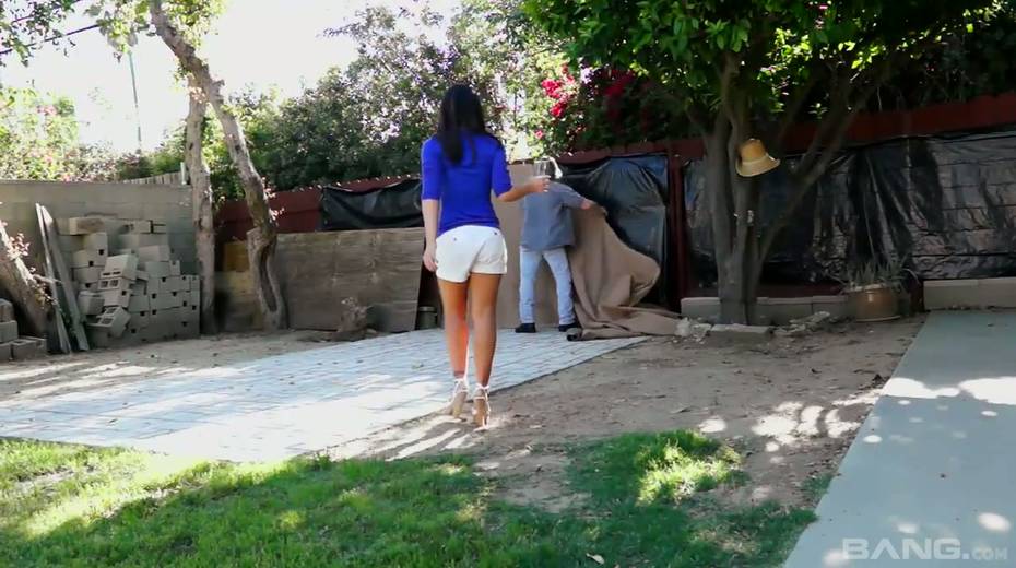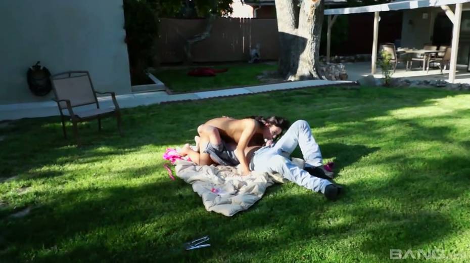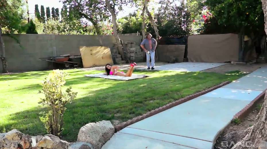 Captivating tanned brunette Riley Winter rides neighbor's dick