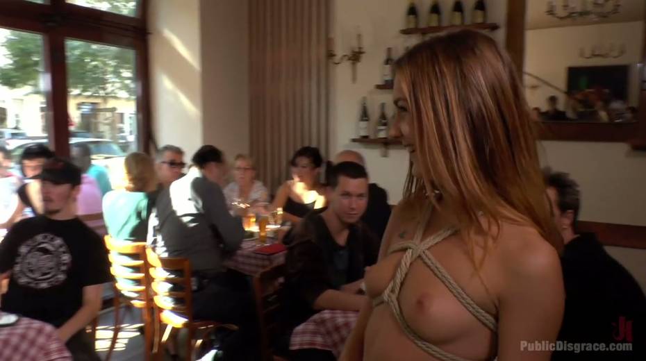 Slender nude chick Lullu Gun gets her pussy punished in public