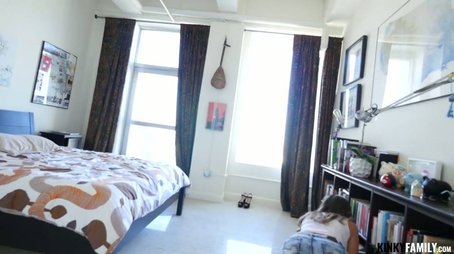 Russian harlot Elena Koshka takes off her jeans shorts and gets her muff rammed