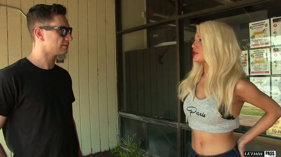 Swanky blond bitch Elizabeth Jolie guzzles a dick and gets her muff slammed