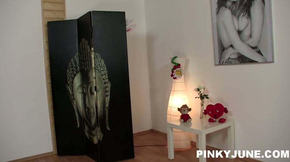 Tanned teen fearing bunny costume Pinky June is toying her pussy