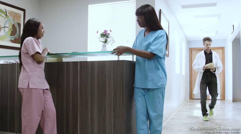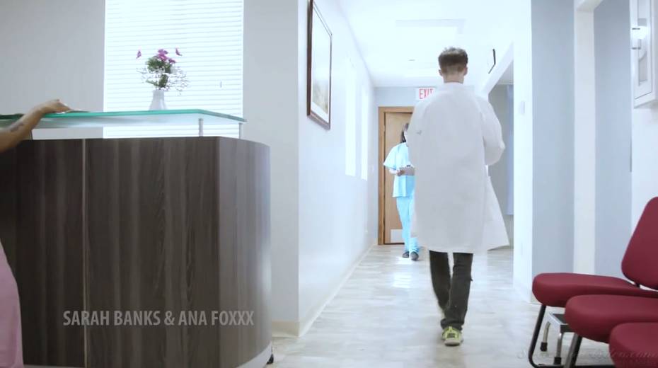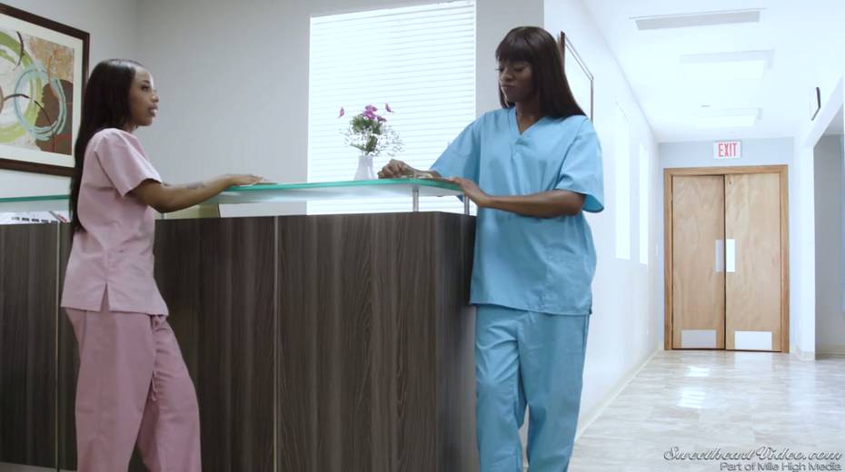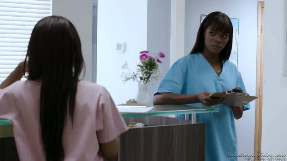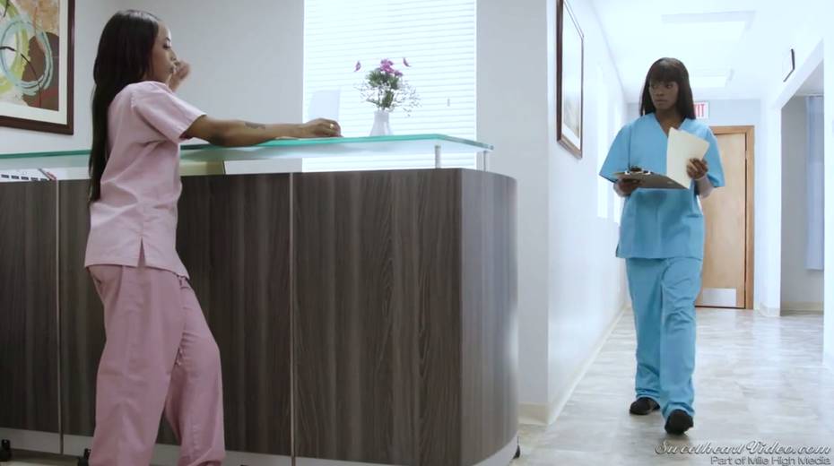 Swanky black nurse Ana Foxxx and her colleague make love in the hospital
