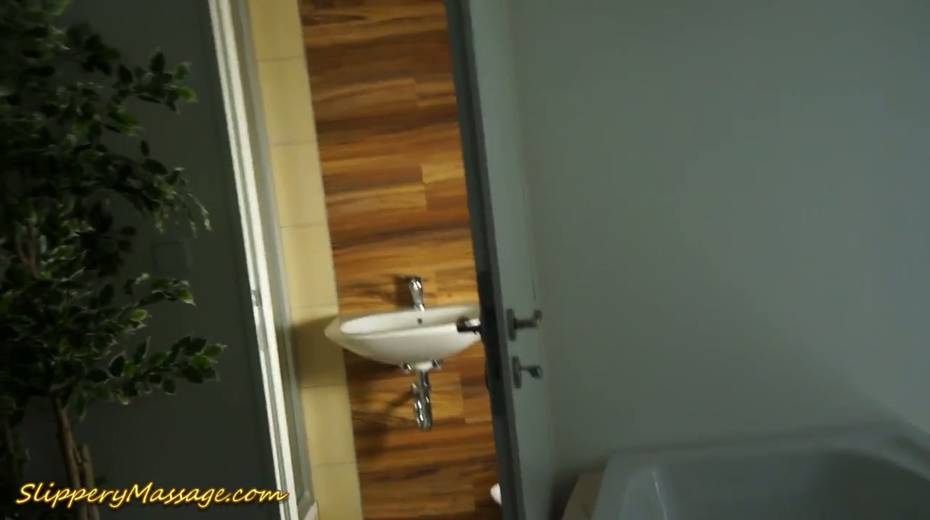 Slim chick Liza Shay gives a massage and takes a shower with her client