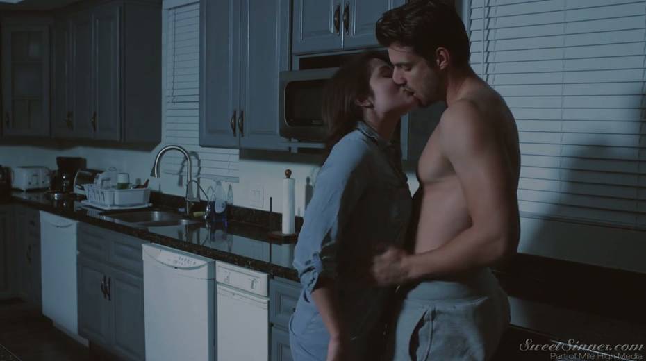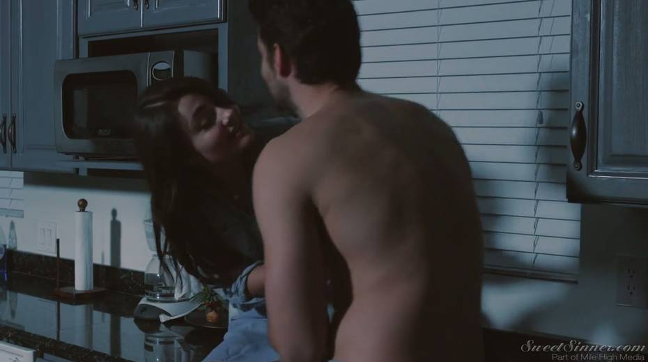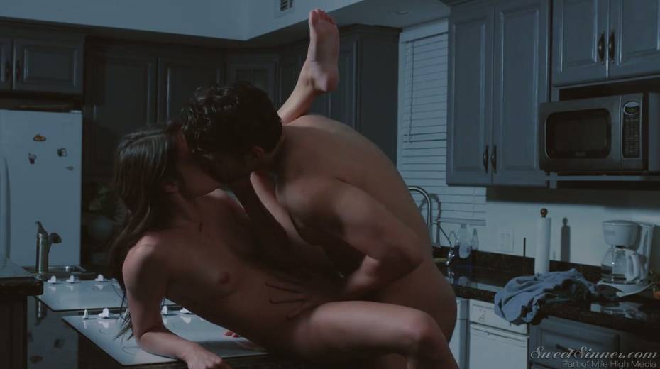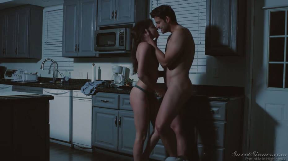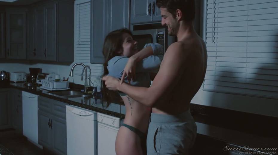 Sizzling hottie and her boyfriend have passionate sex in the kitchen