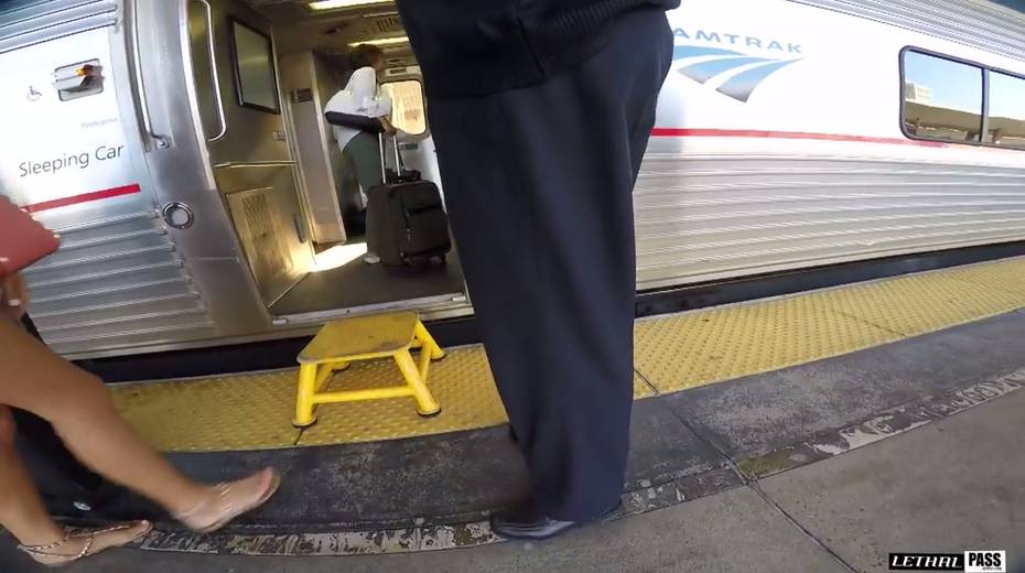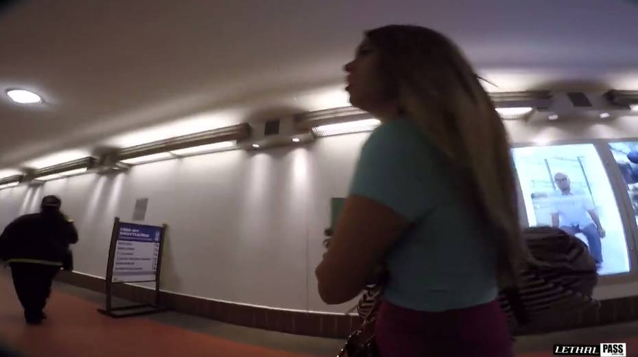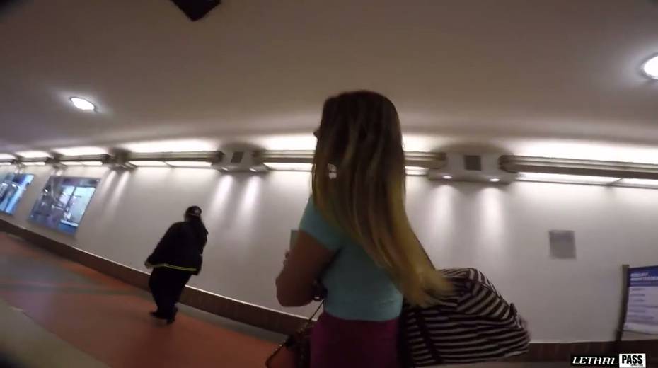 Kinky dude picks up chick and fucks her mouth and pussy in the train