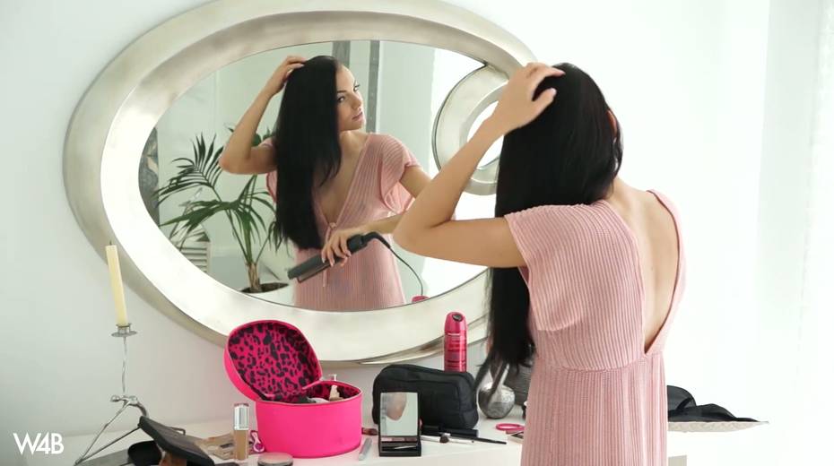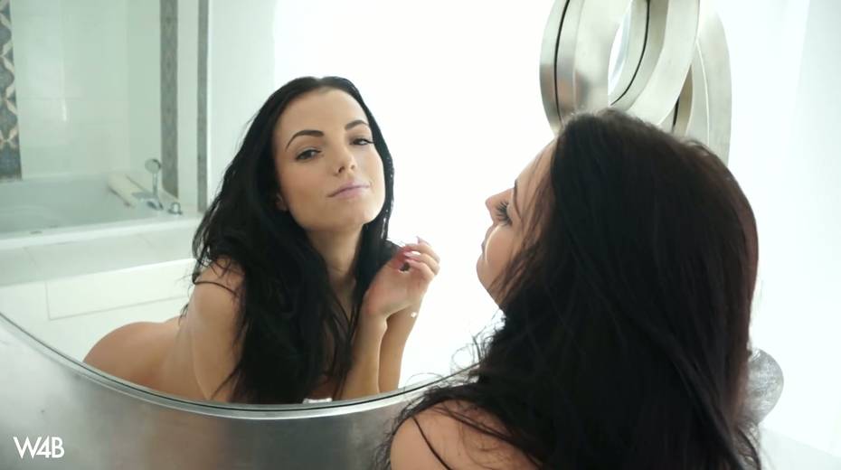 Tasty looking brunette Sapphira is masturbating her delicious pussy