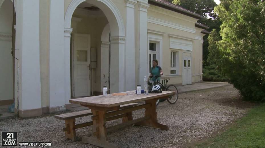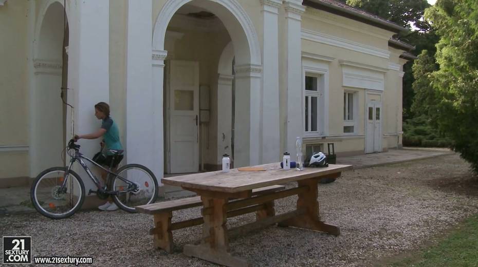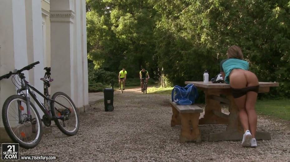 Pretty hot cyclist Athina is in the mood for dirty outdoor threesome sex