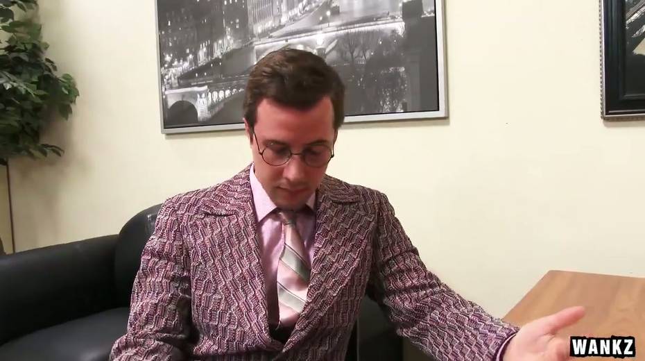 Tattooed ladyboss Nina Elle is checking out her new nerdy employee