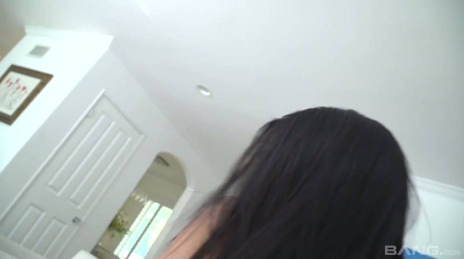 Attractive busty brunette Romi Rain swallows a big dick before a crazy cock riding