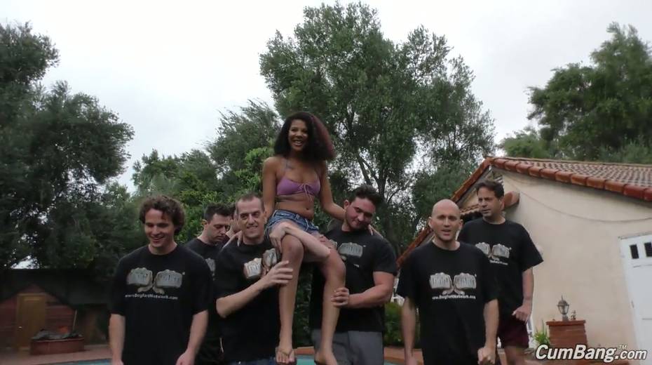 Several white dudes fuck nasty ebony chick Zoey Reyes and jizz on her face