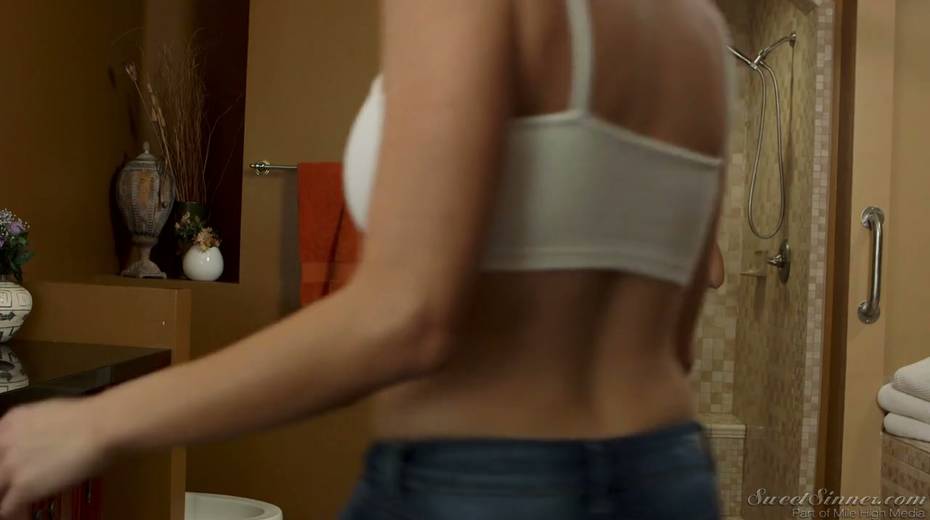 Man eating bitch Sylvia Saige fucks her girlfriend's man after taking a shower