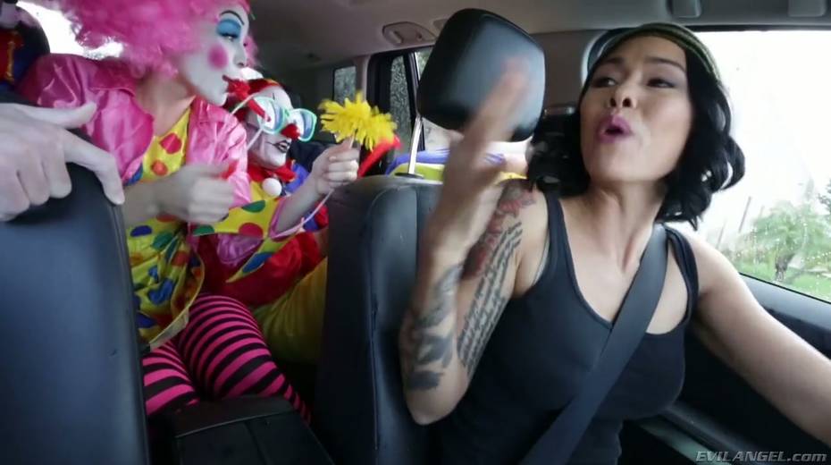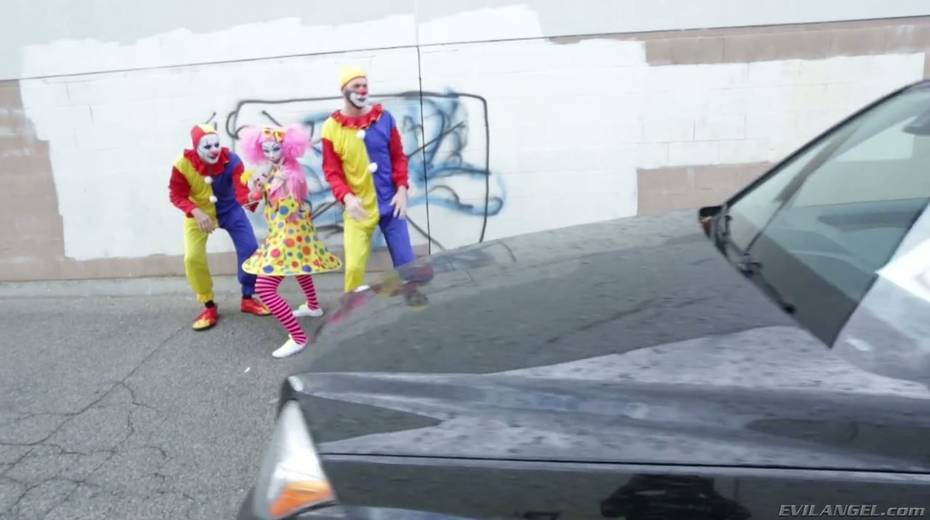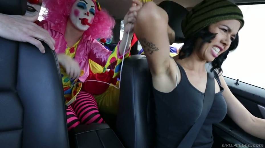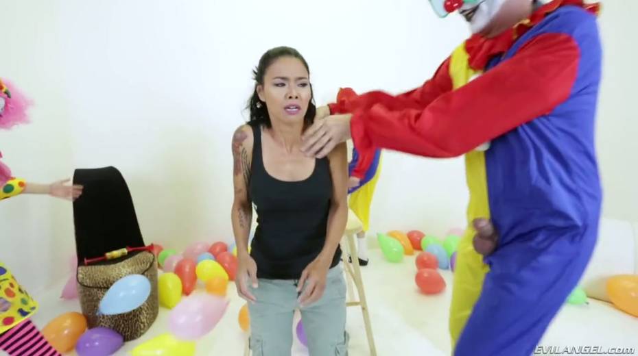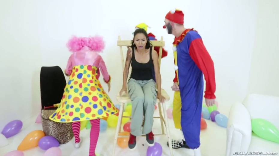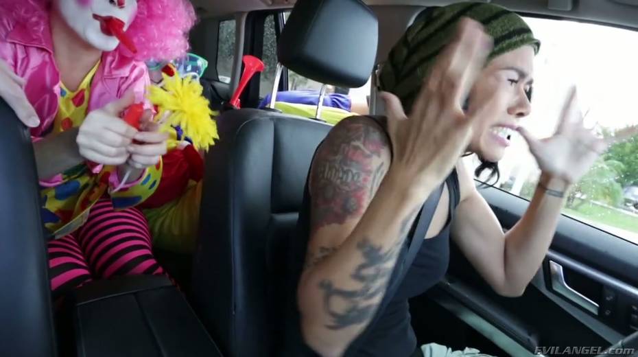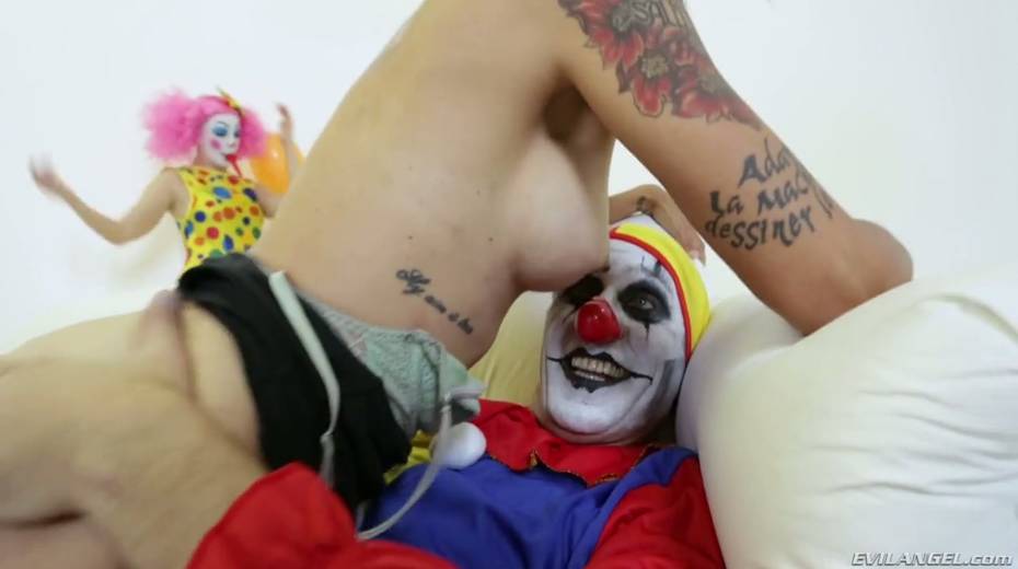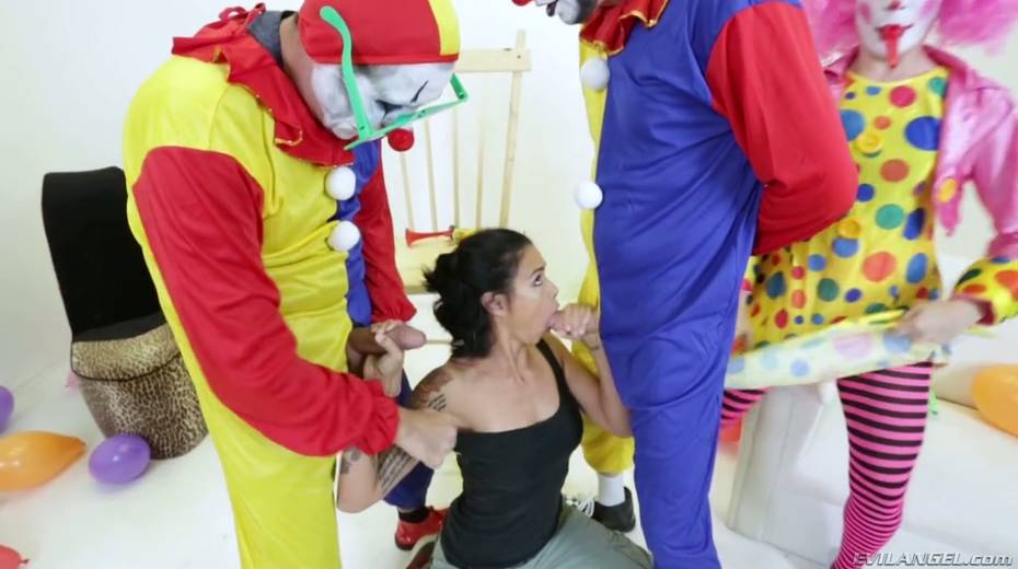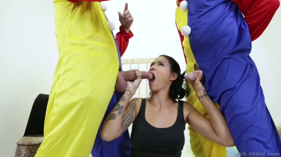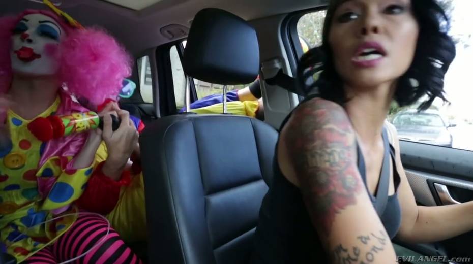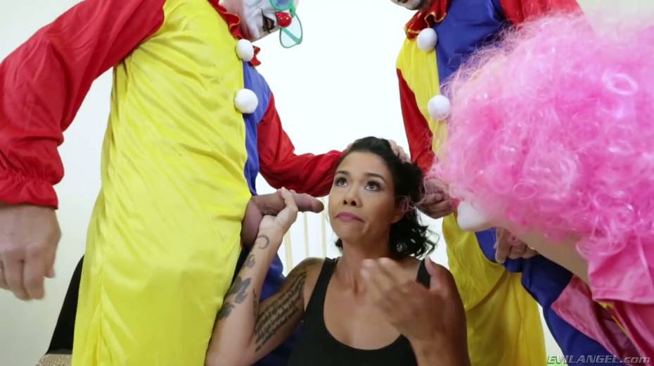 Three crazy clowns fuck sex-appeal tattooed hottie Dana Vespoli